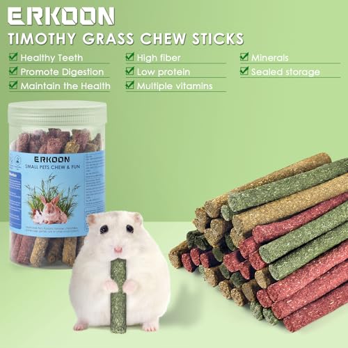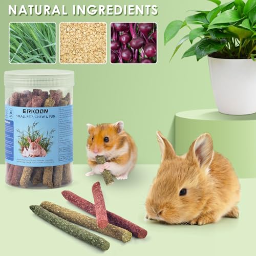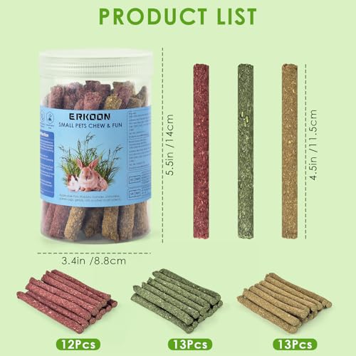 ERKOON 38Pcs Rabbit Chew Toys Timothy Hay Sticks, Guinea Pig Toys for Teeth Natural Molar Sticks Rabbits Treats for Bunnies, Chinchilla, Guinea Pigs, Gerbil, Hamster