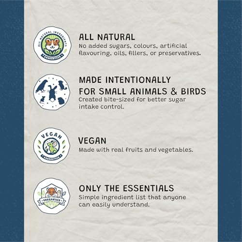 [FORMULATED FOR SMALL ANIMALS] – Each package contains 7 delicious flavors: Pumpkin Cilantro, Strawberry, Mixed Berry, Mixed Greens, Papaya, Banana Apple, Raspberry. Each flavor is intentionally chosen for rabbits, hamsters, guinea pigs, chinchillas, rats, mice, gerbils, and other small animals. This is a perfect choice for rodents who are picky eaters or if you are unsure which flavor your pet will enjoy the most. A 50g package contains approximately 50-55 bite-sized pieces